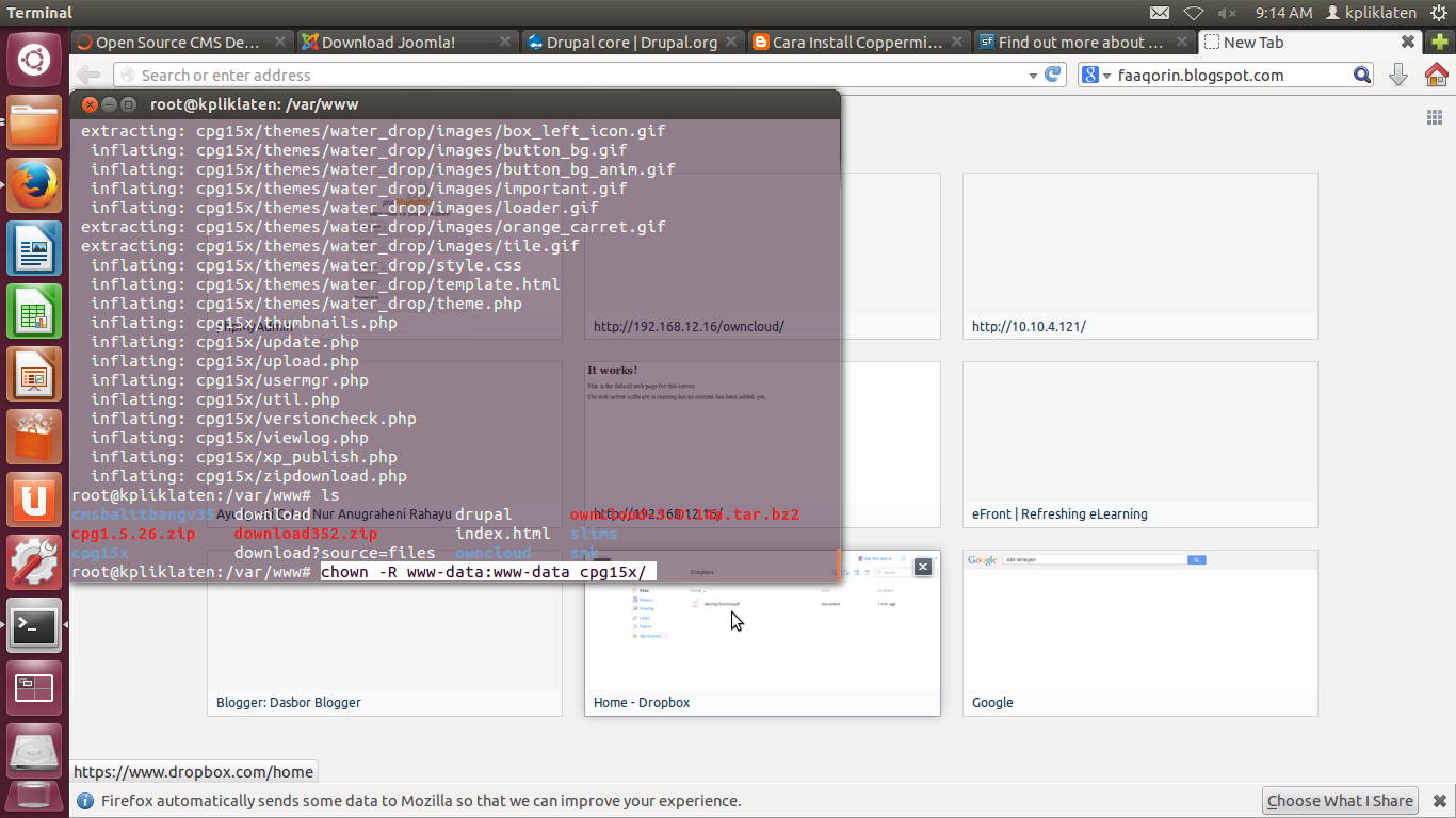 agar lebih mempersingkat waktu jika menggunakan terminal kita bisa langsung memasukannya pada /var/www dan kemudian kita unzip file tersebut.